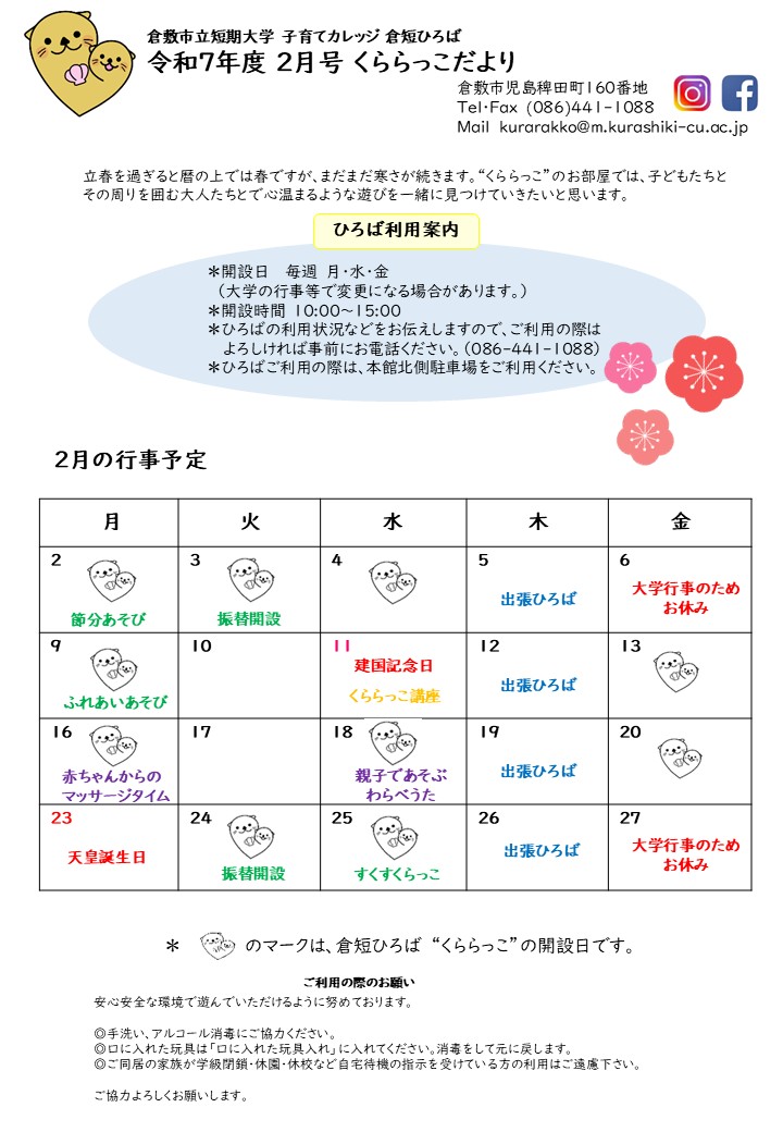 令和7年度2月号くららっこだより