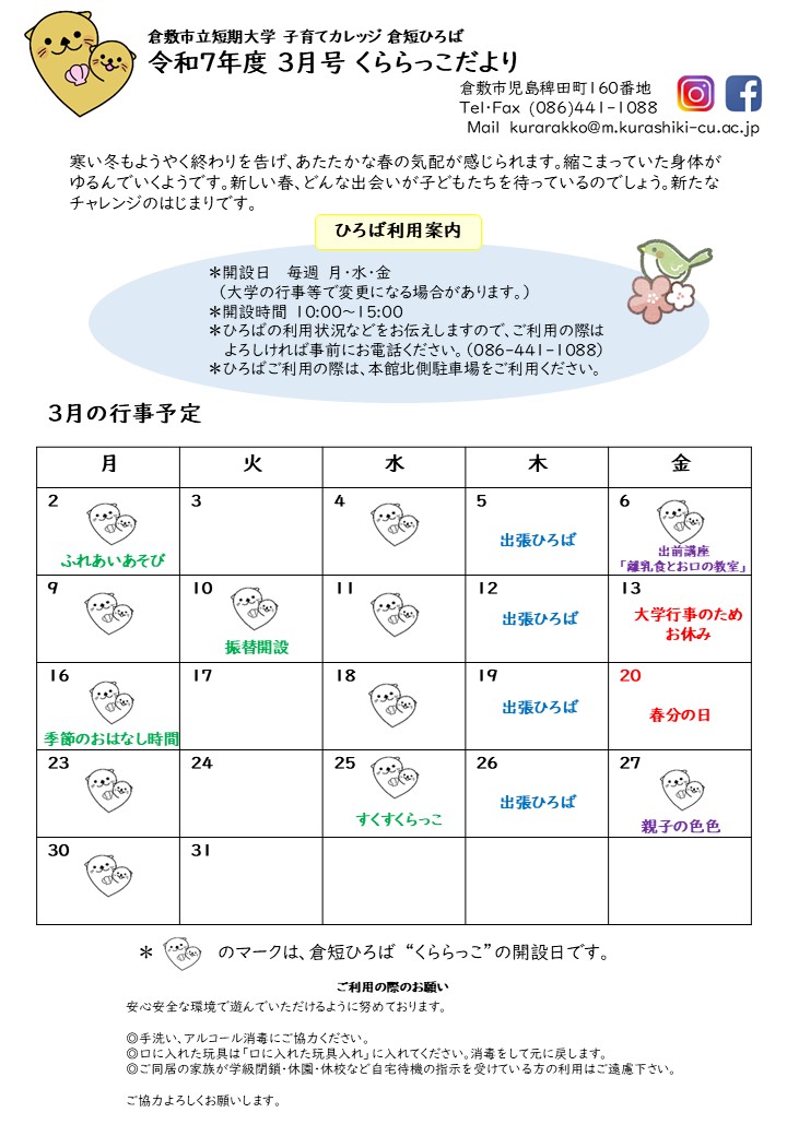 令和7年度 3月号くららっこだより